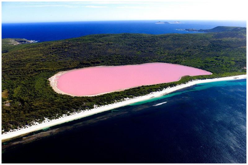 Lake Hillier ligt op Middle Island, het grootste eiland van de Research Archipel in West-Australië. Het meest opvallende kenmerk van het meer is zijn diepe, ondoorzichtige roze kleur, omgeven door een zandbank en dicht eucalyptusbos... Een smalle strook begroeide zandduinen scheidt het meer van de Zuidelijke Oceaan.