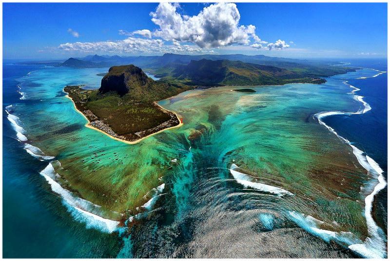Als je over het zuidwesten van Mauritius vliegt, kun je getuige zijn van een fenomeen dat de waanzinnige allure heeft van een onderwaterwaterwaterval!
